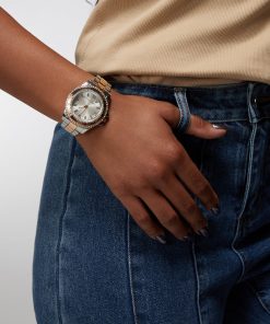 Bebe Women’s Baby Pink Strap And Rosegold Metal Chain Link Bracelet Watch | Baby Pink & Rosegold