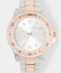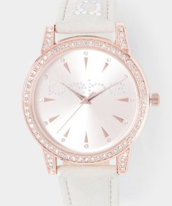 Bebe Women’s Baby Pink Strap And Rosegold Metal Chain Link Bracelet Watch | Baby Pink & Rosegold