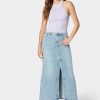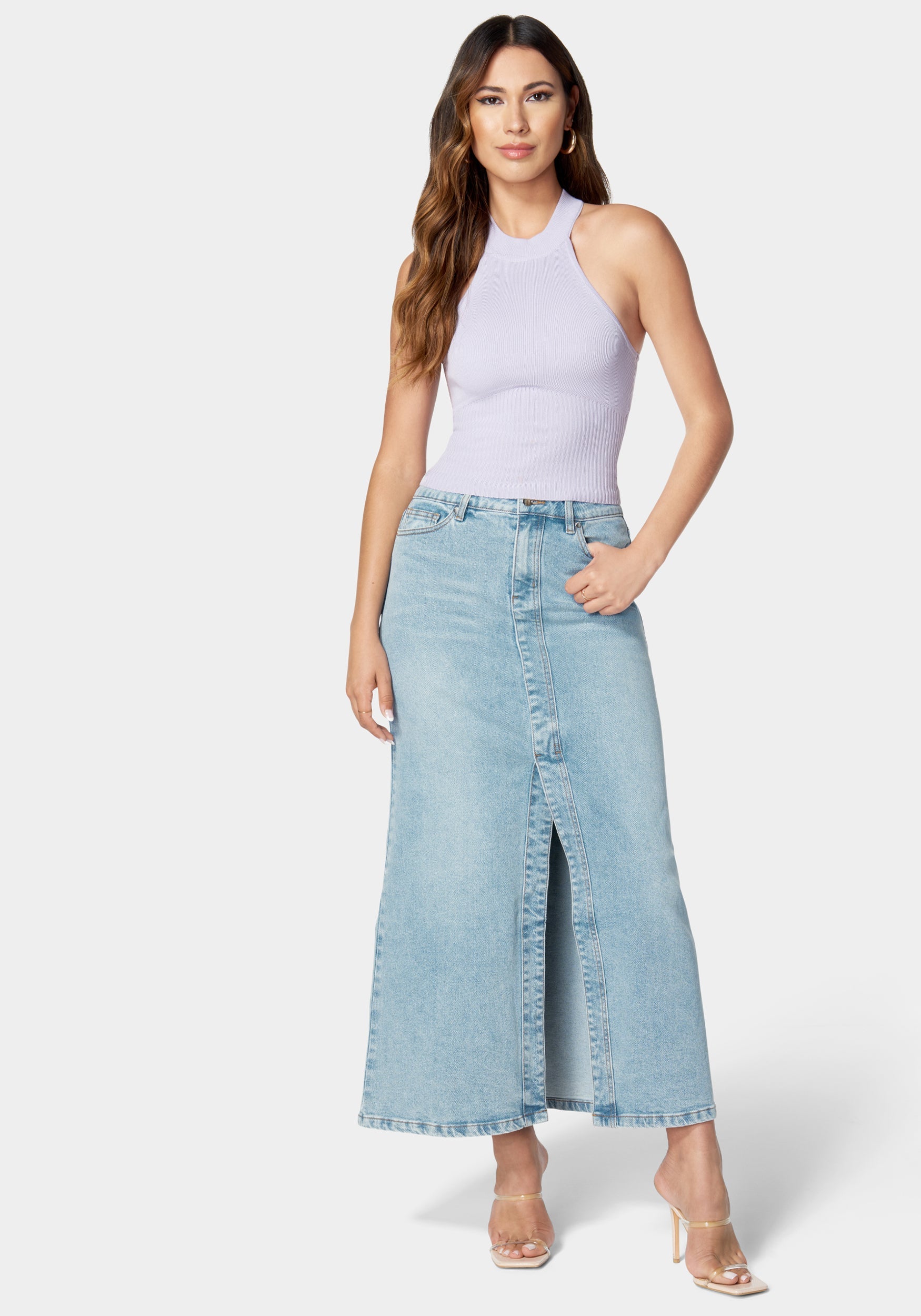 Embrace a throwback style with our heritage denim 5 pockets column skirt. Designed with practicality in mind, this skirt offers both fashion and function, making it a versatile addition to your wardrobe.