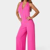 Elevate your eveningwear with this halter jumpsuit featuring wide-leg airflow fabric. Perfect for rooftop cocktails or contemporary celebrations.