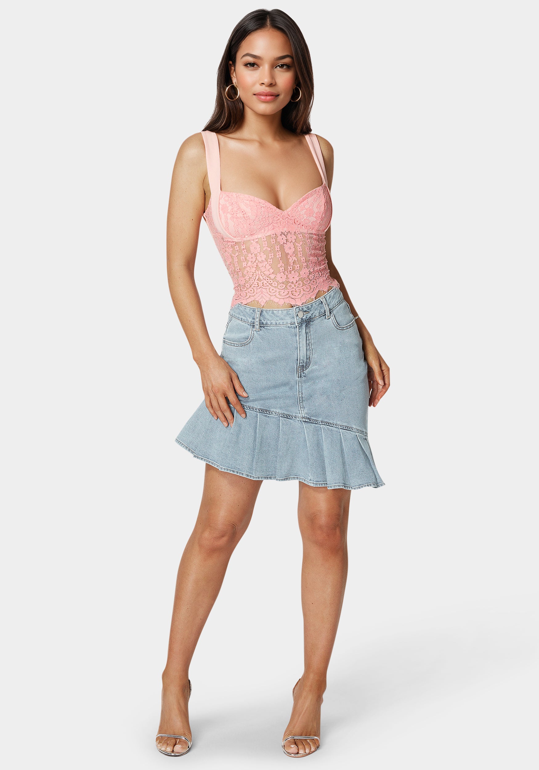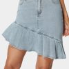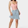A closet staple with an edge, this denim skirt hugs in all the right places. Easy to style, impossible to ignore.