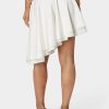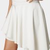 Elevate your look with playful movement. The double-layered fabric and asymmetric hem create visual drama, while subtle rushing perfectly defines your waistline.
