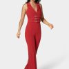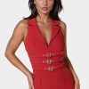 Chic belted jumpsuit featuring a straight-leg silhouette, sleeveless design, invisible zipper, and self-belts. Versatile for work events or sophisticated social gatherings.