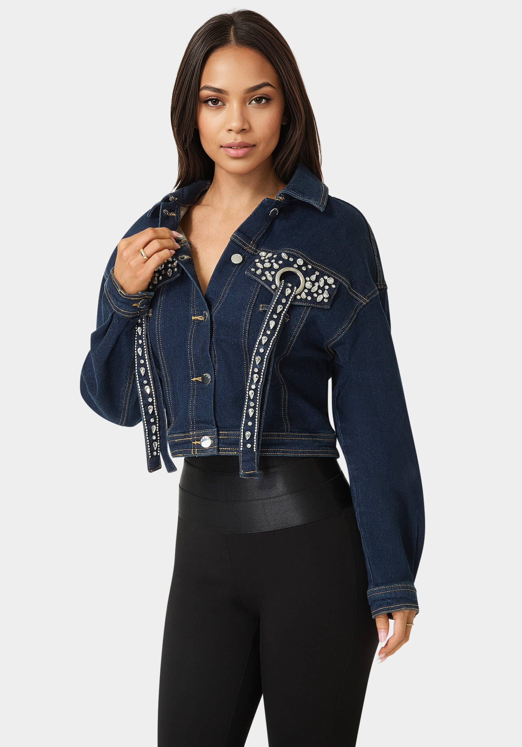 Reinvent your denim collection with the Button Front Stud Detail Denim Jacket. This jacket transforms the classic denim look with bold stud detailing, perfect for those looking to make a statement. Its versatile design means it can be dressed up or down, depending on your mood.