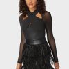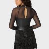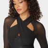 Redefine seduction with the Coated Knit Combo Mesh Halter Neck Bodysuit, where bold and contemporary meet. The halter neckline promises a beguiling bareback moment, while the fusion of coated knit and sheer mesh ignites a fire of visual intrigue. Wear it, and become the epitome of the modern temptress.