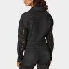 Reinvent casual chic with this unique denim jacket, featuring drop shoulders and intricate lace embellishments. Perfect for adding a touch of elegance to your day-to-night look.