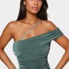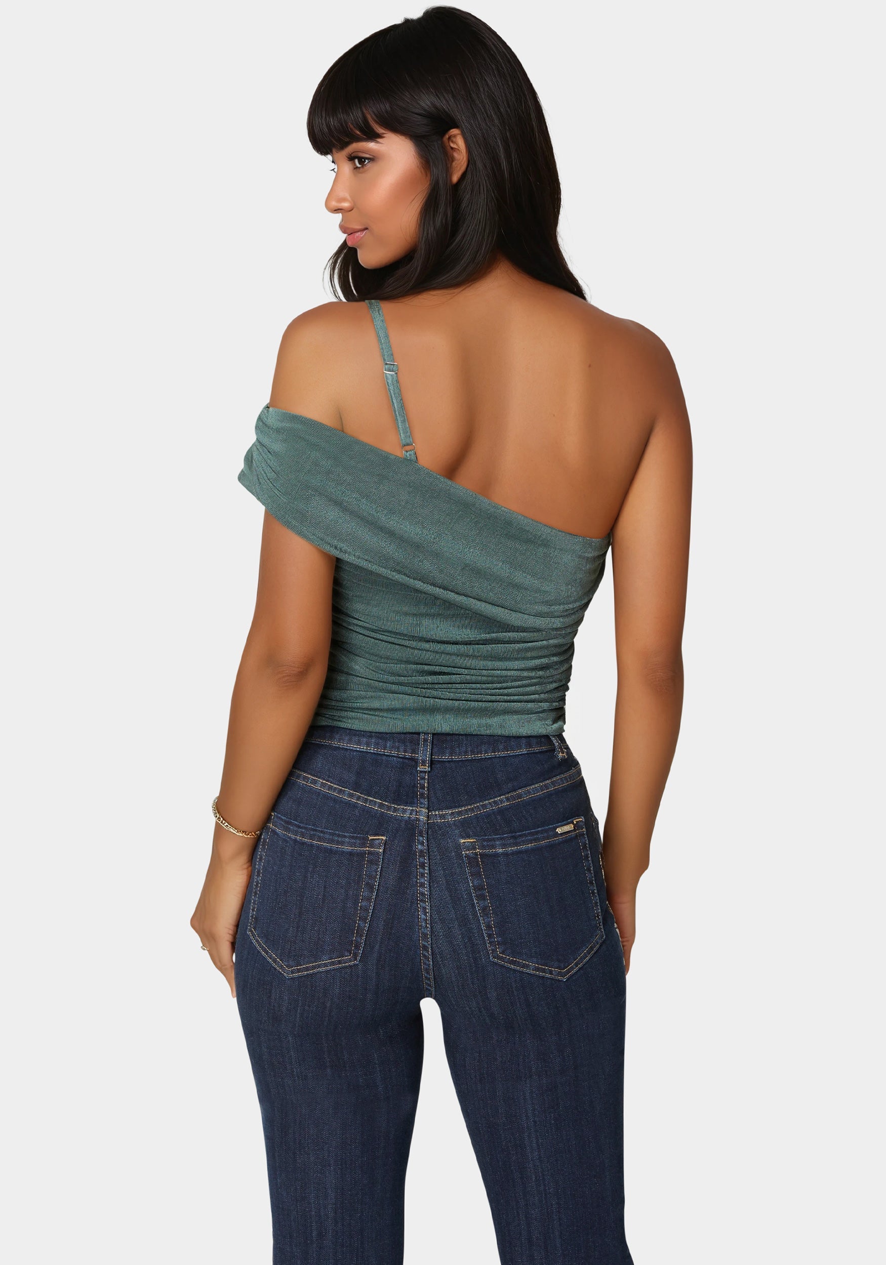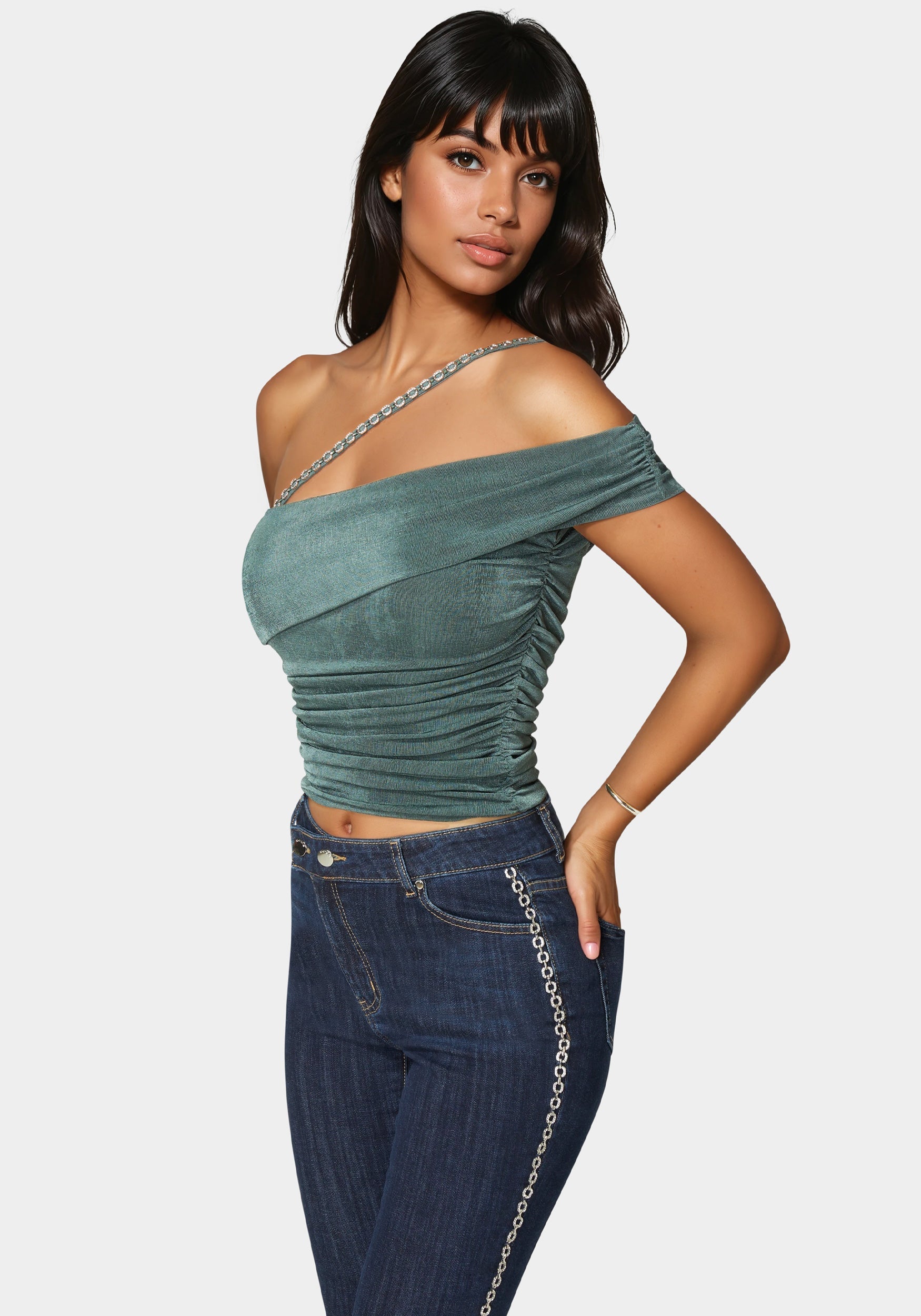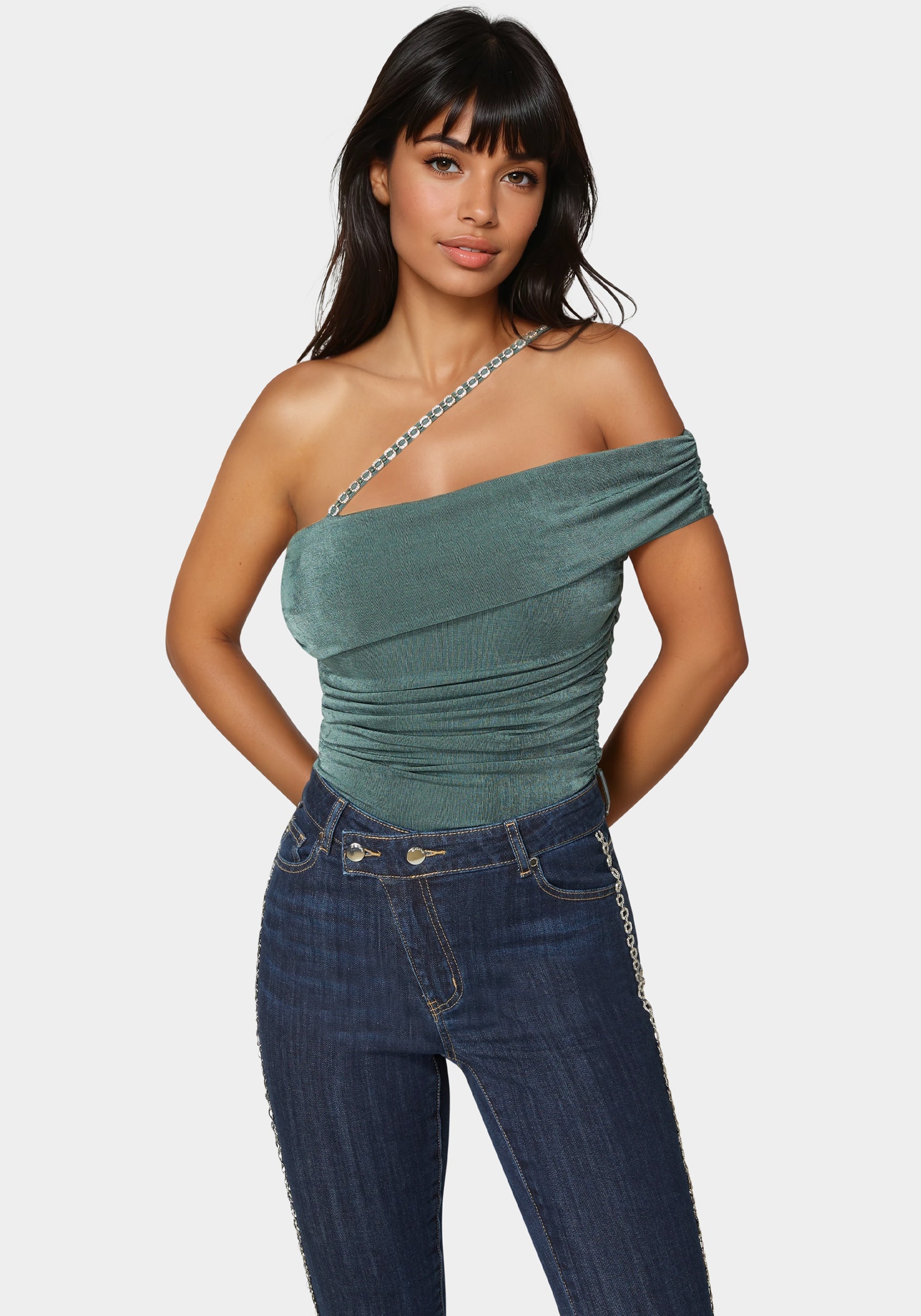 Drape yourself in style with this one-shoulder knit top, featuring a chain-enhanced strap and fitted design perfect for date nights, cocktail parties, and upscale gatherings.