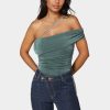 Drape yourself in style with this one-shoulder knit top, featuring a chain-enhanced strap and fitted design perfect for date nights, cocktail parties, and upscale gatherings.