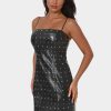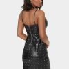 Mini faux leather dress accentuated with edgy stud details; a go-to for concerts or dynamic night events.