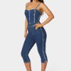 Show off your curves with the fitted Capri denim jumpsuit. Perfect for a casual night out or daytime errands, its sleek design and Capri length offer a flattering and versatile fit.