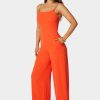 Elevate your evening wear with this fluid crepe palazzo leg jumpsuit. Great for elegant dinners or sophisticated events, its flowing legs and sleek bodice offer a stunning silhouette.
