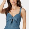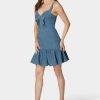 Embrace timeless style with a twist in our Front Tie Denim Dress. Its flattering fit-and-flare silhouette and playful tie front make it a stand-out piece for any occasion.