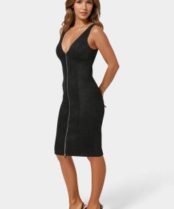 Show off your style with the halter front zipper midi denim dress. Perfect for concerts or a night out, its edgy halter design and functional zipper detail offer a modern twist on a classic look.