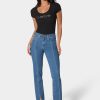 Elevate your denim collection with these high-rise, bootleg jeans, featuring a chic hem slit. Perfect for adding an edge to your everyday style.