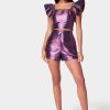 Revamp your wardrobe with these high waist iridescent jacquard shorts. The luminous fabric paired with a contemporary high-waisted design provides a look that’s both chic and comfortable. Complete the look with the ruffle sleeve iridescent jacquard top.