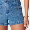 These on-trend medium wash denim shorts feature a high-rise waist with a flattering patch pocket design. Perfect for daytime plans and weekend wear.