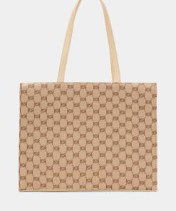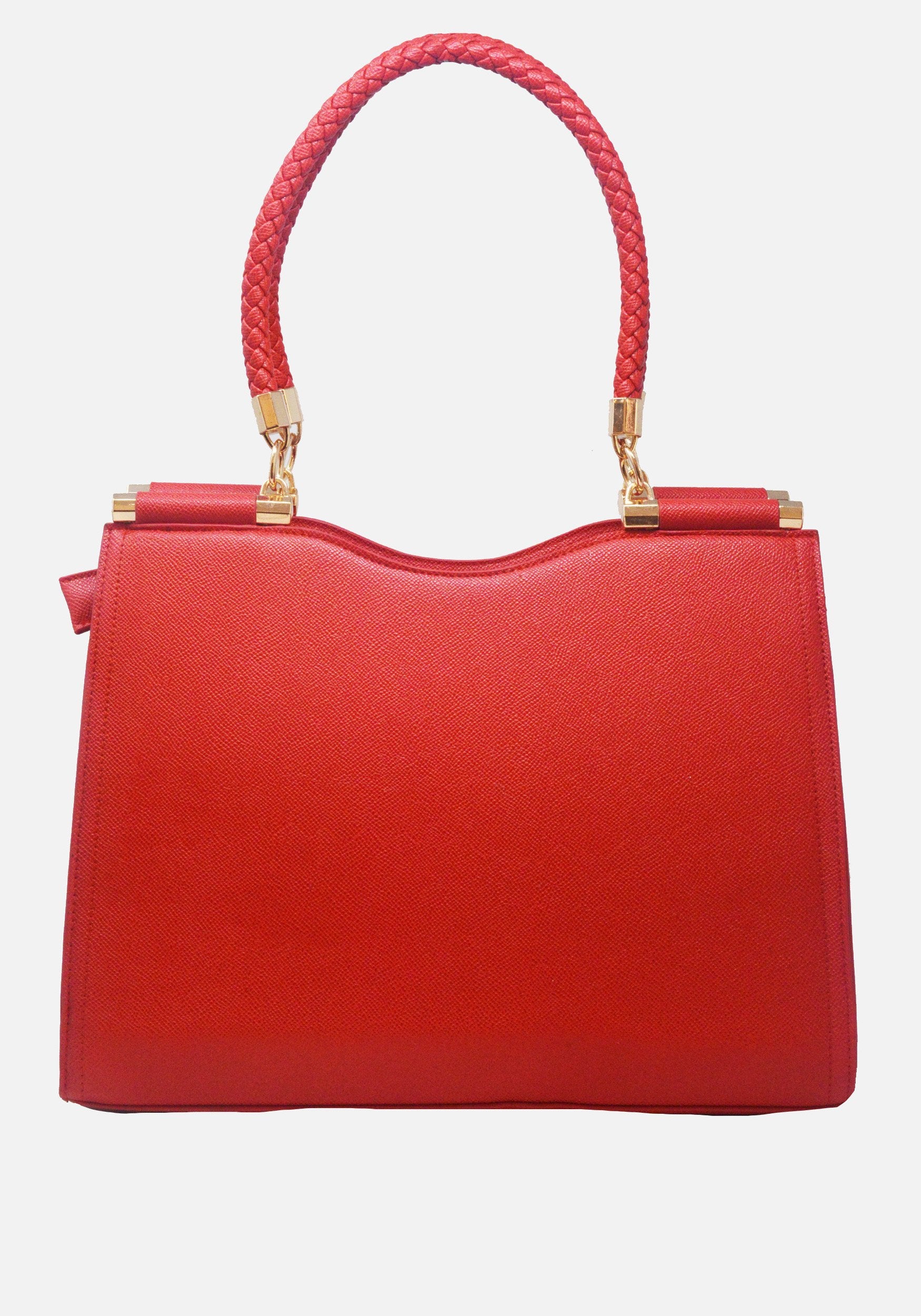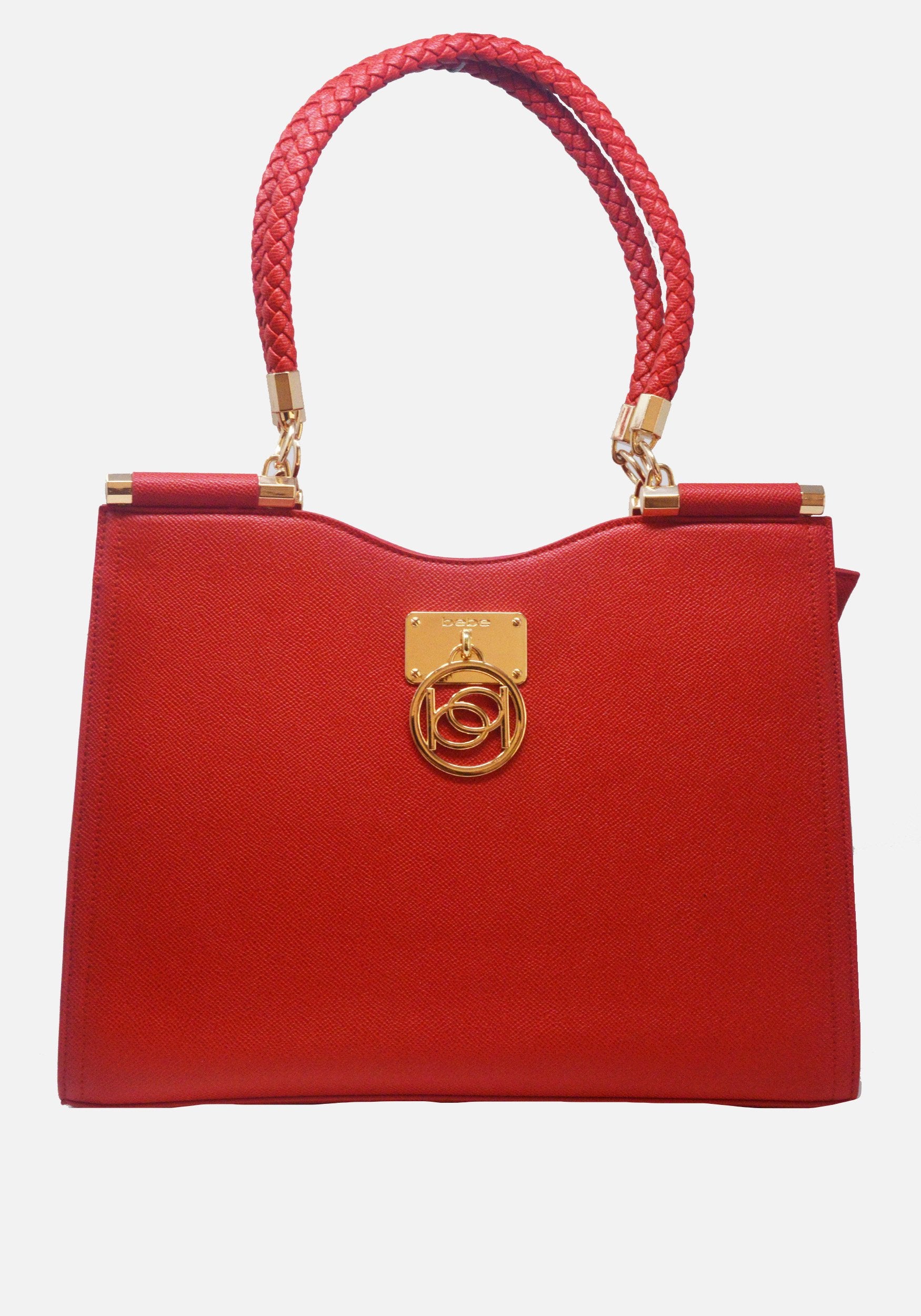 The perfect shopping companion is a stylish bag. This shopper bag features braided rope top handles, a detachable crossbody strap, and charm logo plate detail.