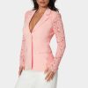 Elevate your wardrobe with our Lace Combo Tailored Jacket. This sophisticated and sultry jacket combines the timeless elegance of lace with a tailored silhouette. The contrast of the intricate lace panels against the structured design creates a captivating and stylish look. Whether worn over a dress or with tailored pants, this jacket is a must-have for any fashion-forward individual.