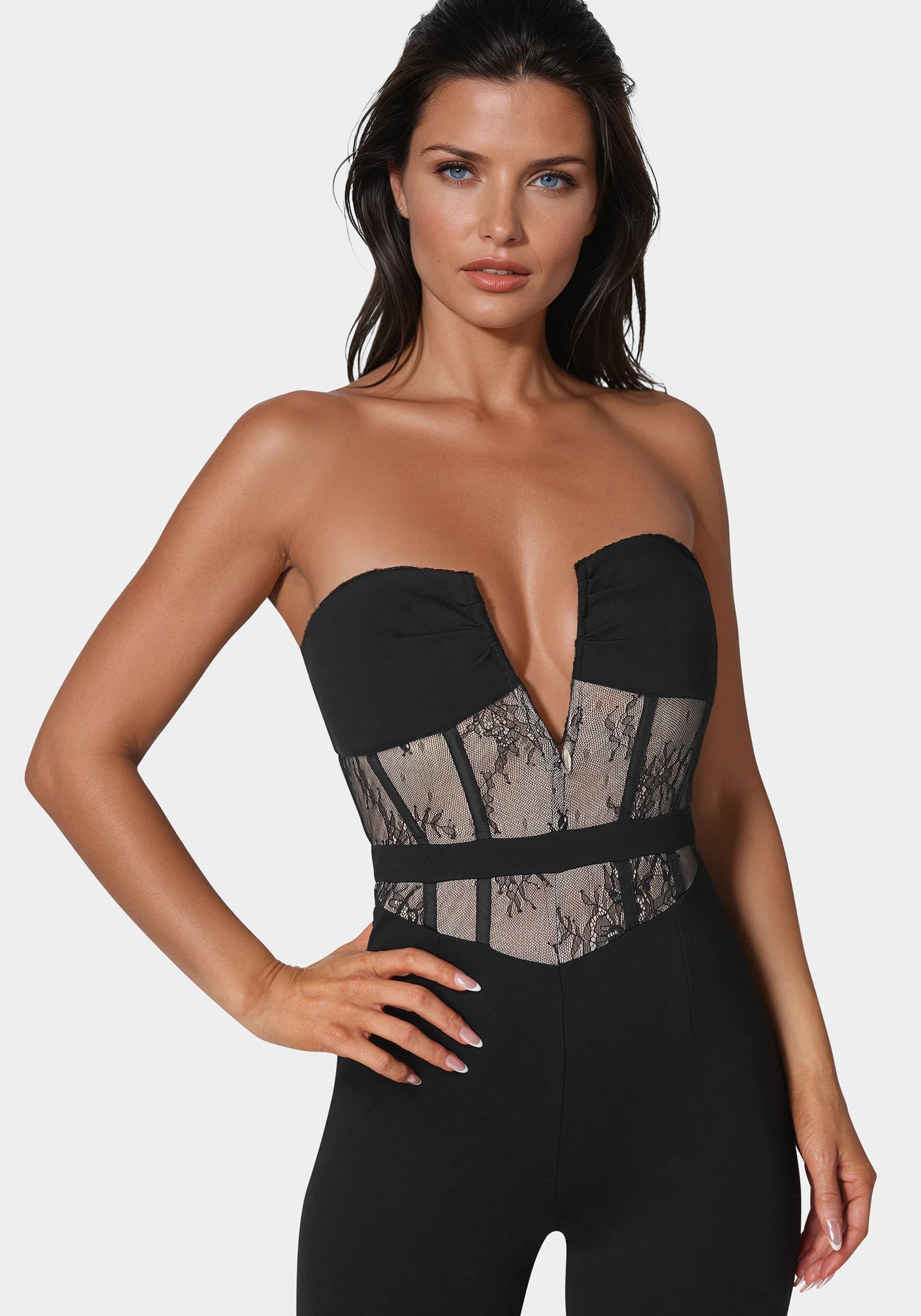 Accentuate your silhouette with a lace corset catsuit. It sculpts a sleek, bold look.