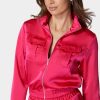 Redefine your casual chic with this Satin Bomber Jacket, featuring unique front patch pockets and a laundered finish. It’s an essential piece for your transitional wardrobe.