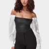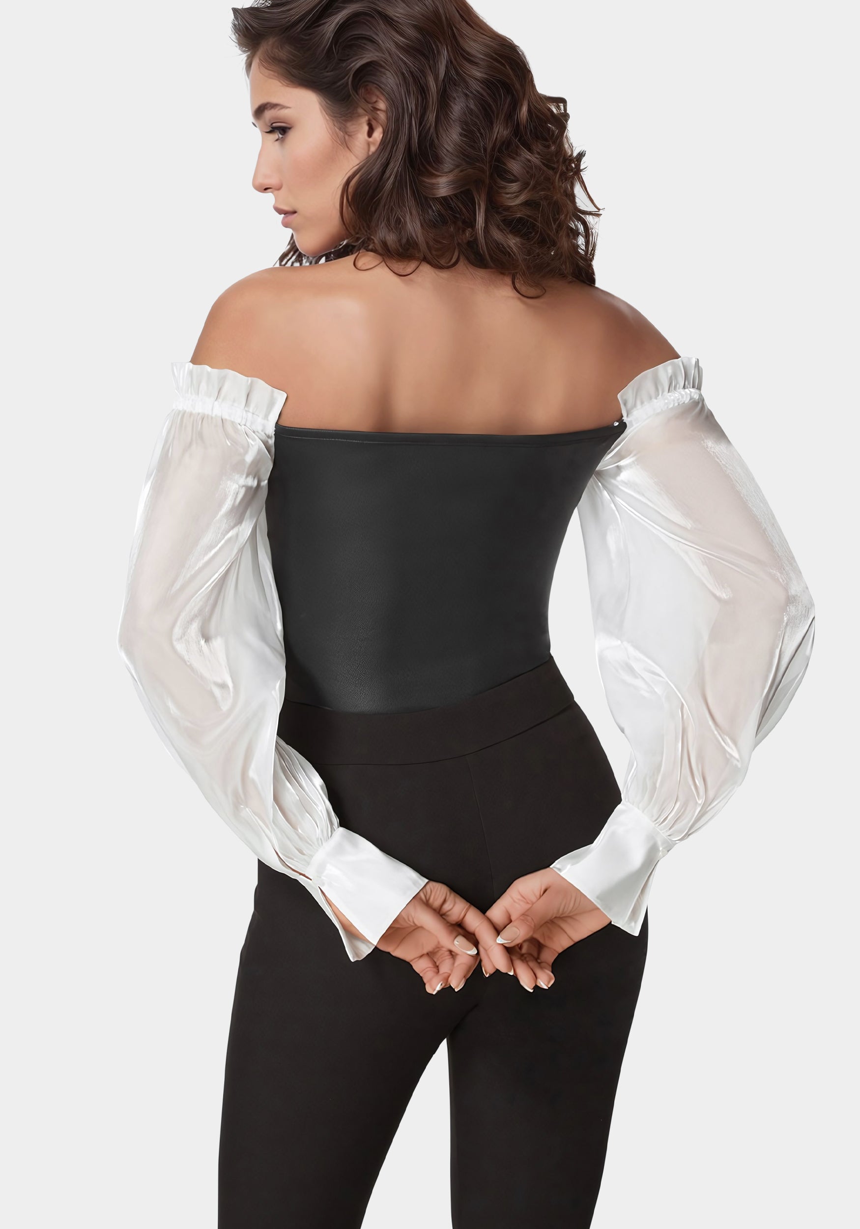 Dive into a sea of elegance with the Liquid Chiffon Sleeve Coated Knit Bodysuit. Flowing chiffon sleeves cascade like waterfalls, contrasted with the sleek, coated knit that hugs your body like a second skin. Transcend the ordinary with this paradox of textures that come together to create an ensemble that’s as enigmatic as it is enticing.