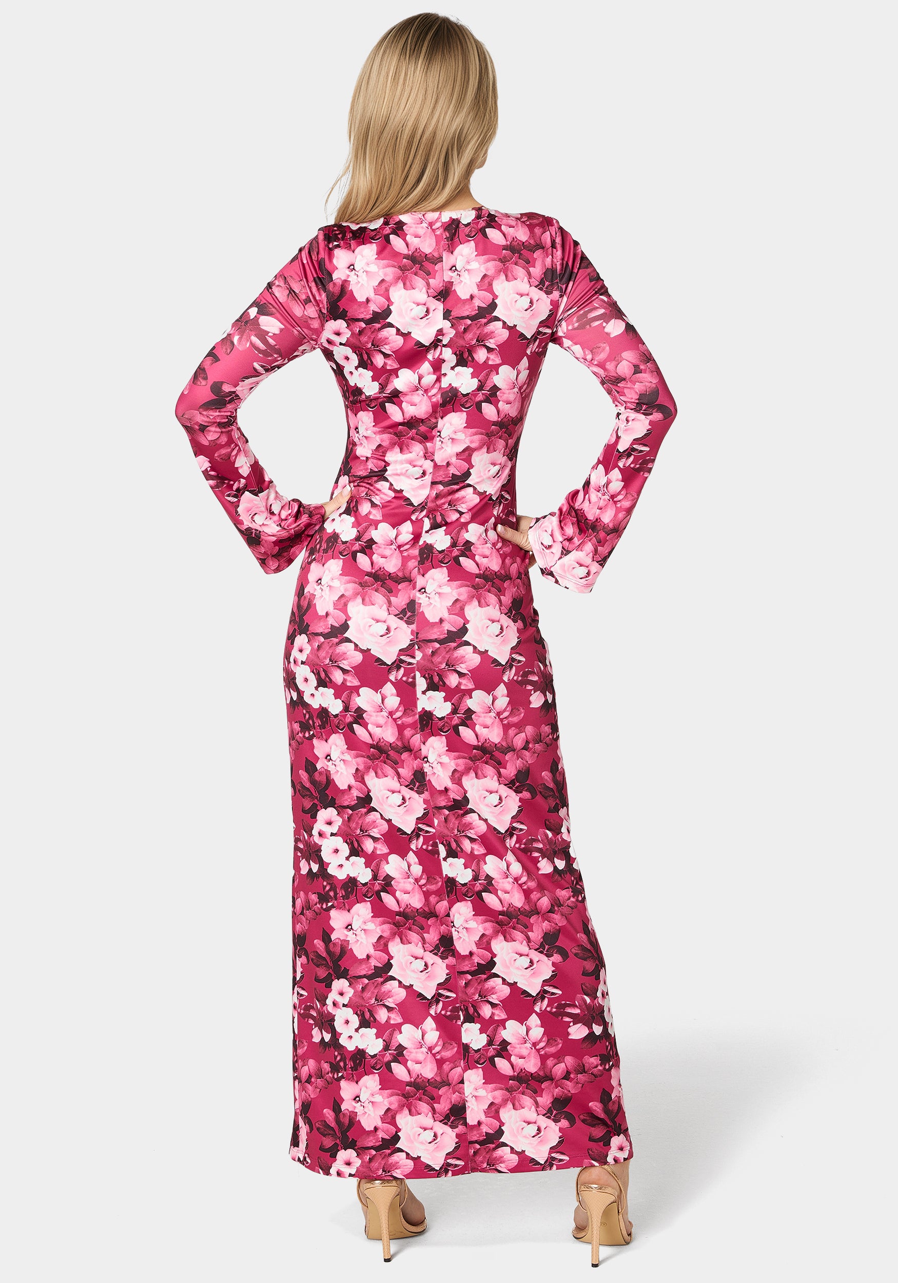 Delight in this long-sleeve maxi with a seductive chest keyhole, an elegant choice for special occasions or formal dinners.