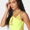 Introducing the ultimate statement piece – our mesh combo strappy halter bodysuit. Engineered for the bold and the beautiful, it blends sleek mesh panels with a seductive halter neckline.