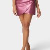 Wrap yourself in the molten glamour of the Metallic Vegan Leather Faux Wrap Mini Skirt. With a silhouette that suggests a playful unwrap at any moment, this piece is a flirtatious nod to the daring. It’s a celebration of the bold spirit within, mirrored in the eye-catching metallic finish that refuses to be ignored. Pair it with the matching Metallic Vegan Leather Zipper Detail Moto Jacket.