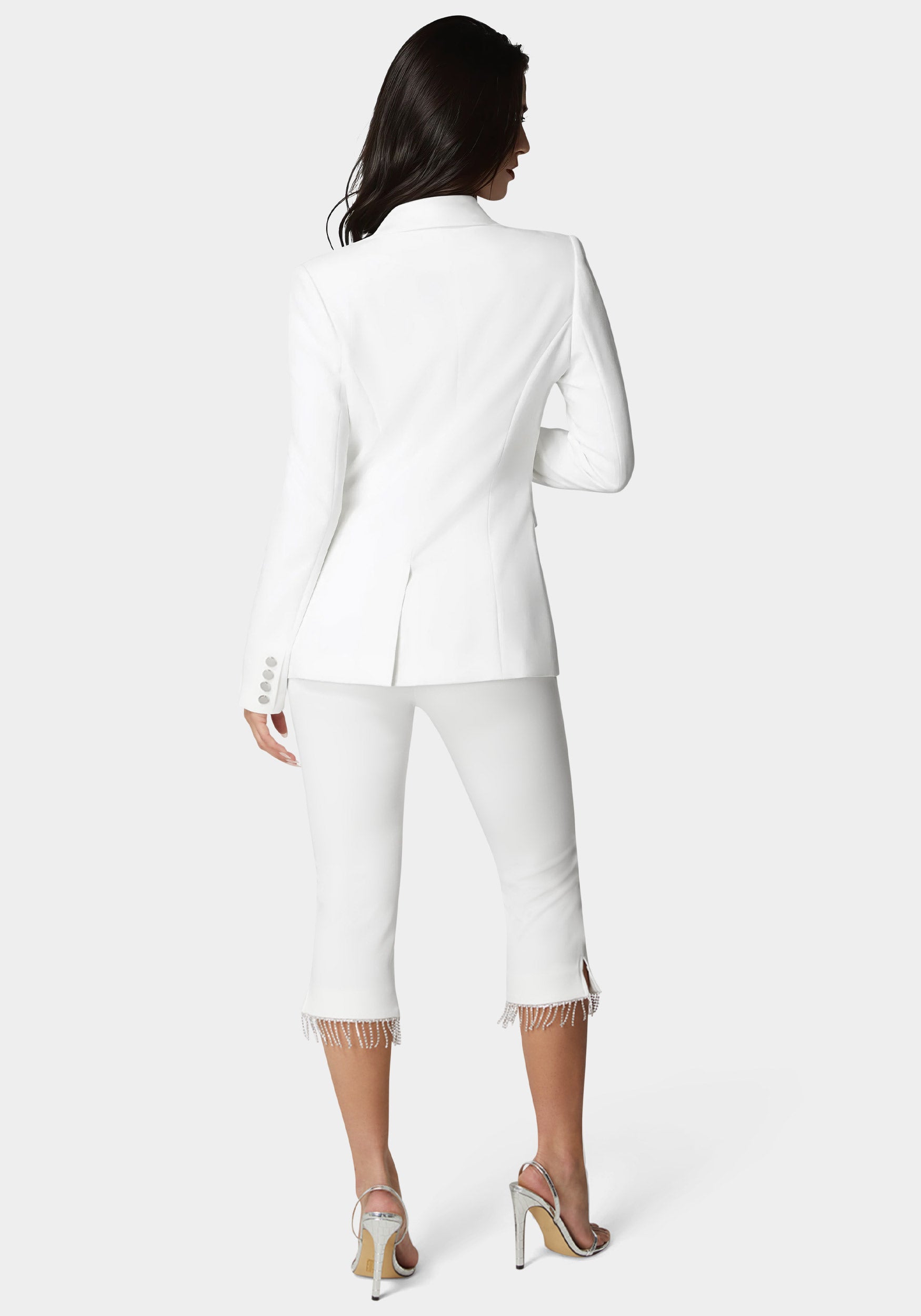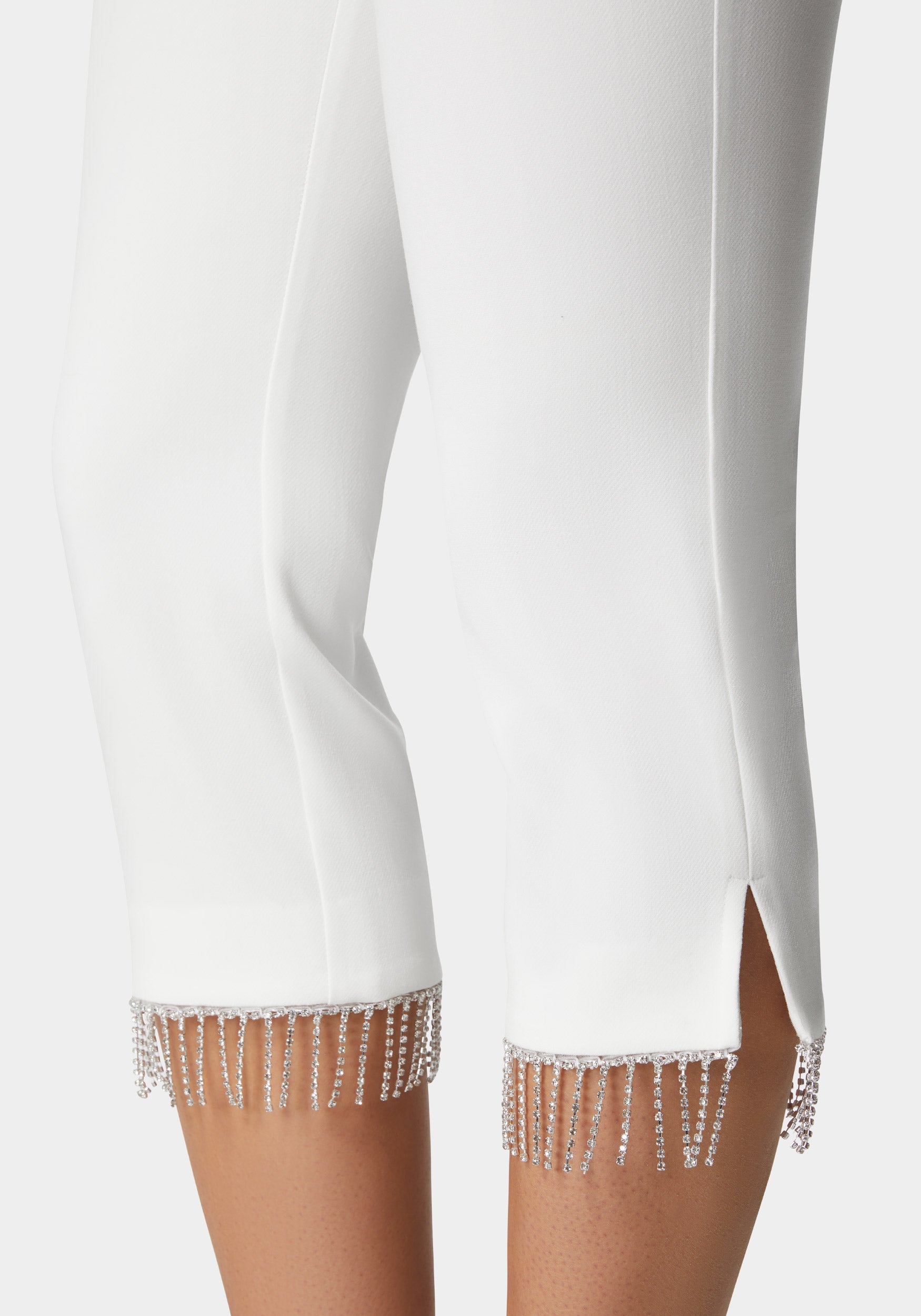 Add a playful sparkle to your look. Comfort meets glam with our rhinestone fringed capris.