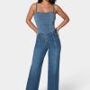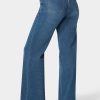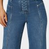 Fashionable wide-leg jeans with decorative lace-up front and metal back zipper. Offers a comfortable yet stylish look for casual or trendy occasions.