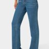 A natural waist and V-cut define these straight-leg jeans, offering versatile style for any occasion.