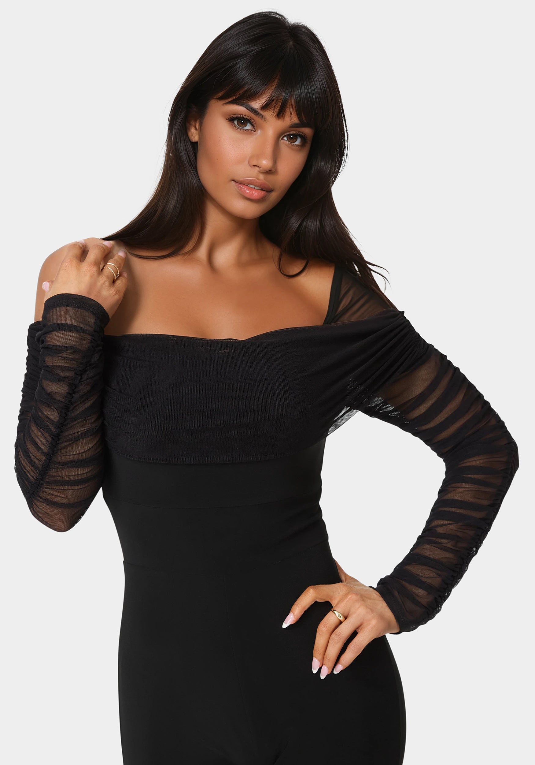 Effortless yet bold, this off-shoulder jumpsuit serves looks everywhere. Date night, gallery openings, or an impromptu getaway.