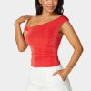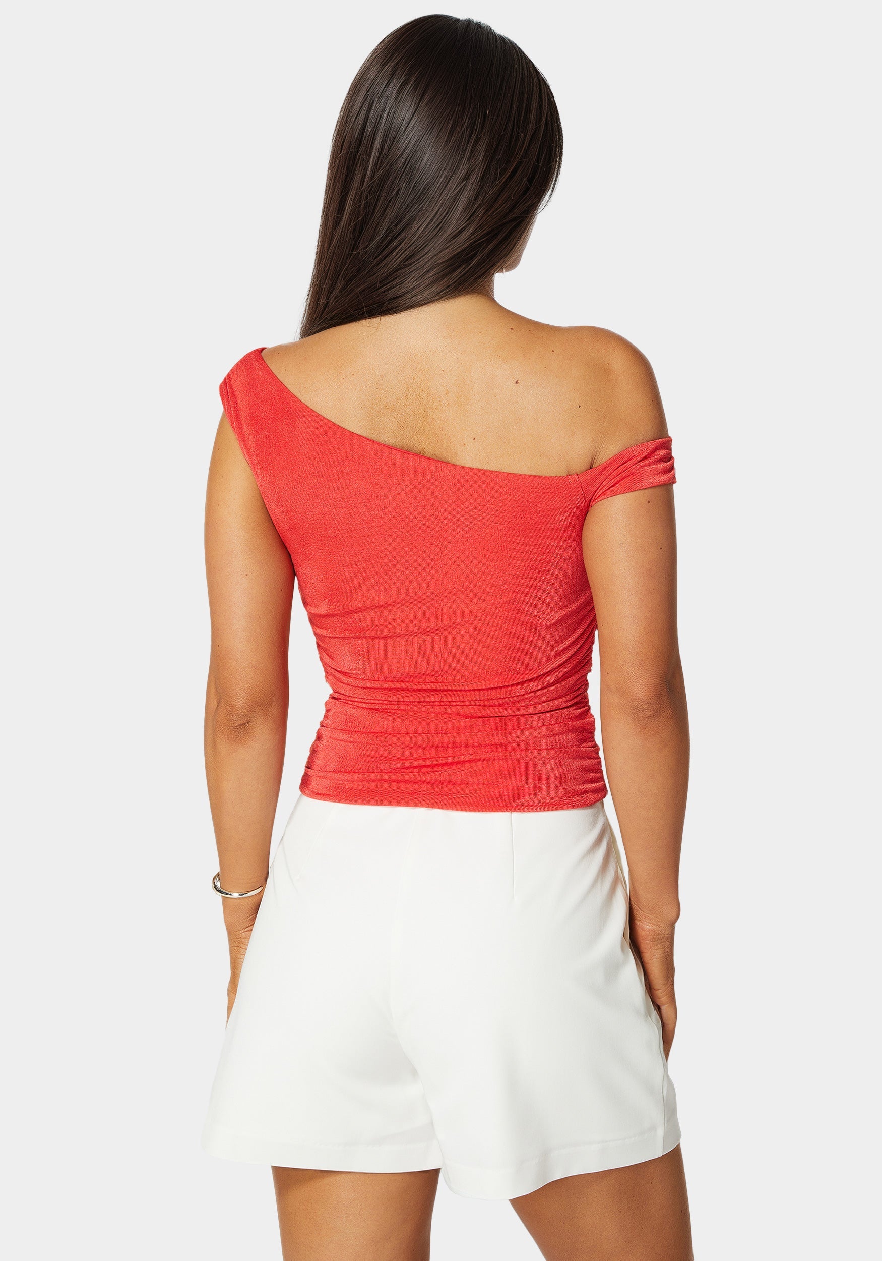 Turn heads in this one-shoulder knit top with flattering rushing. From a rooftop party to a candlelit dinner.