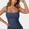 Stand out in this unique denim dress at casual parties or gatherings, featuring an open back that offers a twist of surprise.