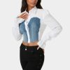 Stay effortlessly chic with this classic poplin denim top; suitable for day-to-night transitions.