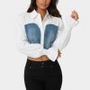 Stay effortlessly chic with this classic poplin denim top; suitable for day-to-night transitions.