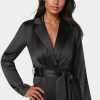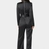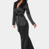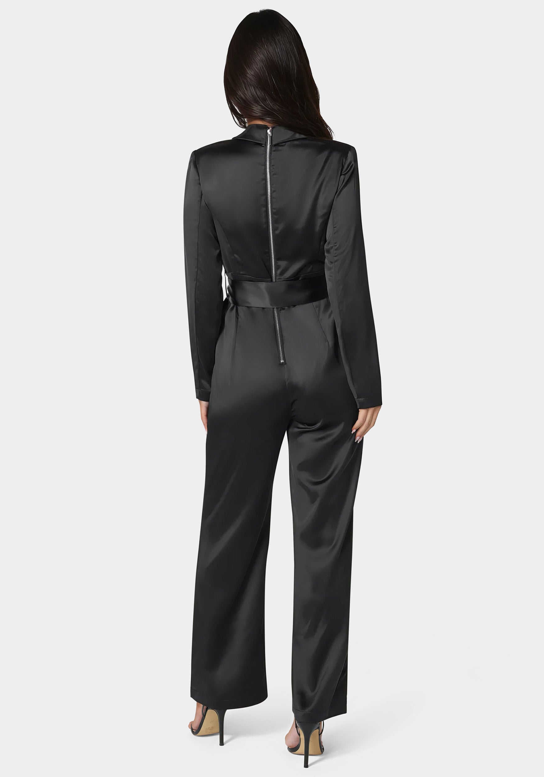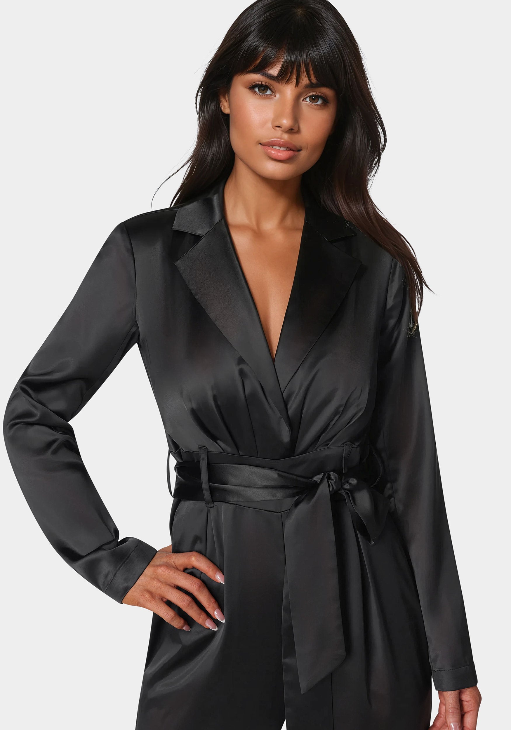 This sleek satin jumpsuit melds sophistication with comfort. Its blazer-inspired design suits upscale events and chic evenings.