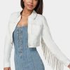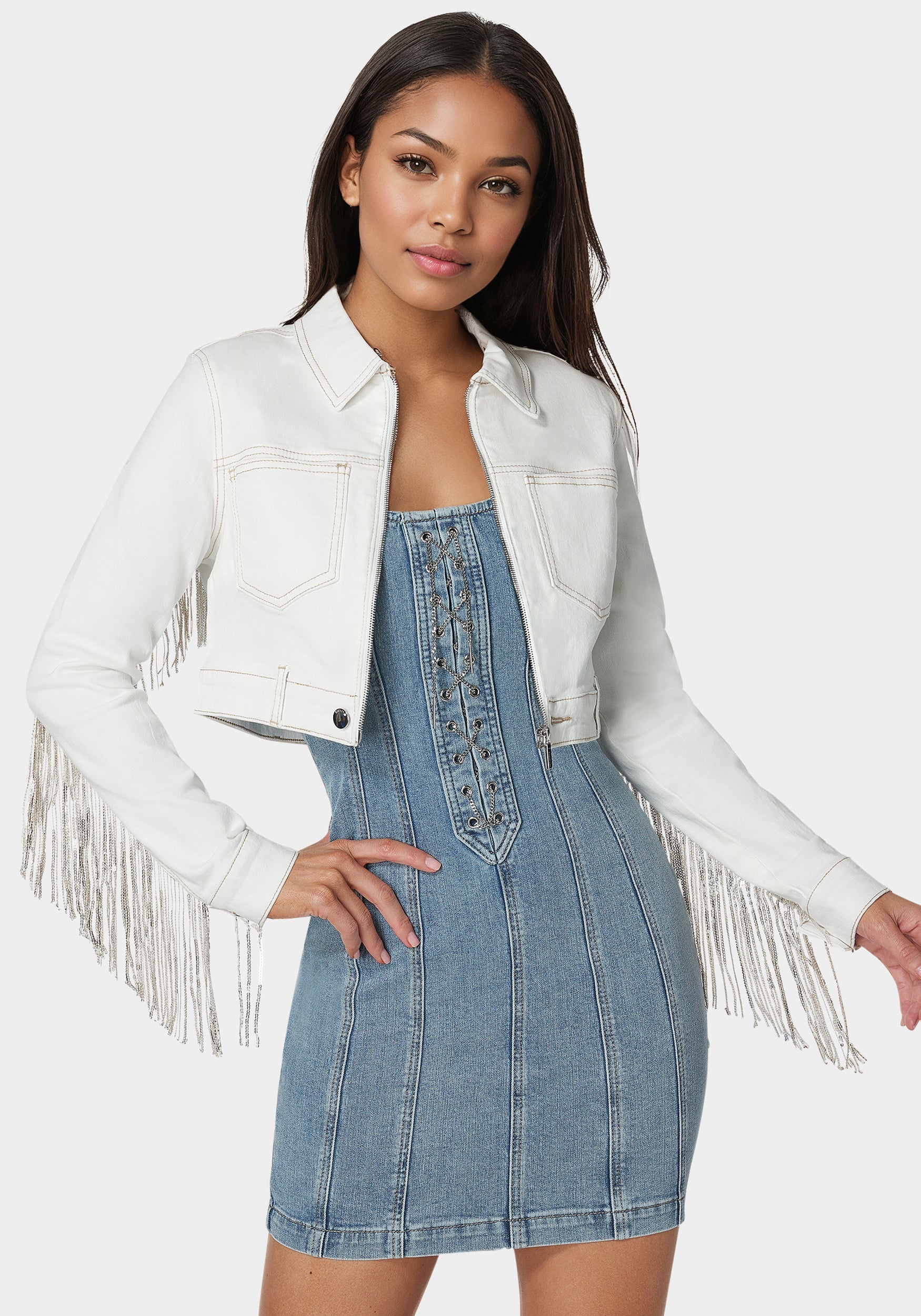 Add a touch of dazzle to your denim collection. A jacket adorned with sequins and fringe creates a standout, shimmering layer.