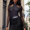 Enter the scene with the audacious charm of the Suede Fringe Combo Vegan Leather Studded Skirt. The flirtation of fringe complements the tough-luxe edge of studs, creating a skirt that swings to the rhythm of your fierce resolve. Make a statement that echoes with every step, in a skirt that speaks to the brave and the beautiful.