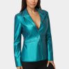 The Tailored Metallic Vegan Leather Blazer is an audacious twist on a timeless piece. Perfect for networking events or avant-garde art show openings, this piece reflects your bold, barrier-breaking style.