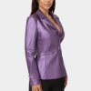 Bebe Women’s Tailored Metallic Vegan Leather Blazer | Imperial Purple