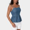Sleek and versatile, this peplum tank with thin straps and a back zipper fits every mood. Layer it up or let it shine solo during rooftop hangs or daytime adventures.