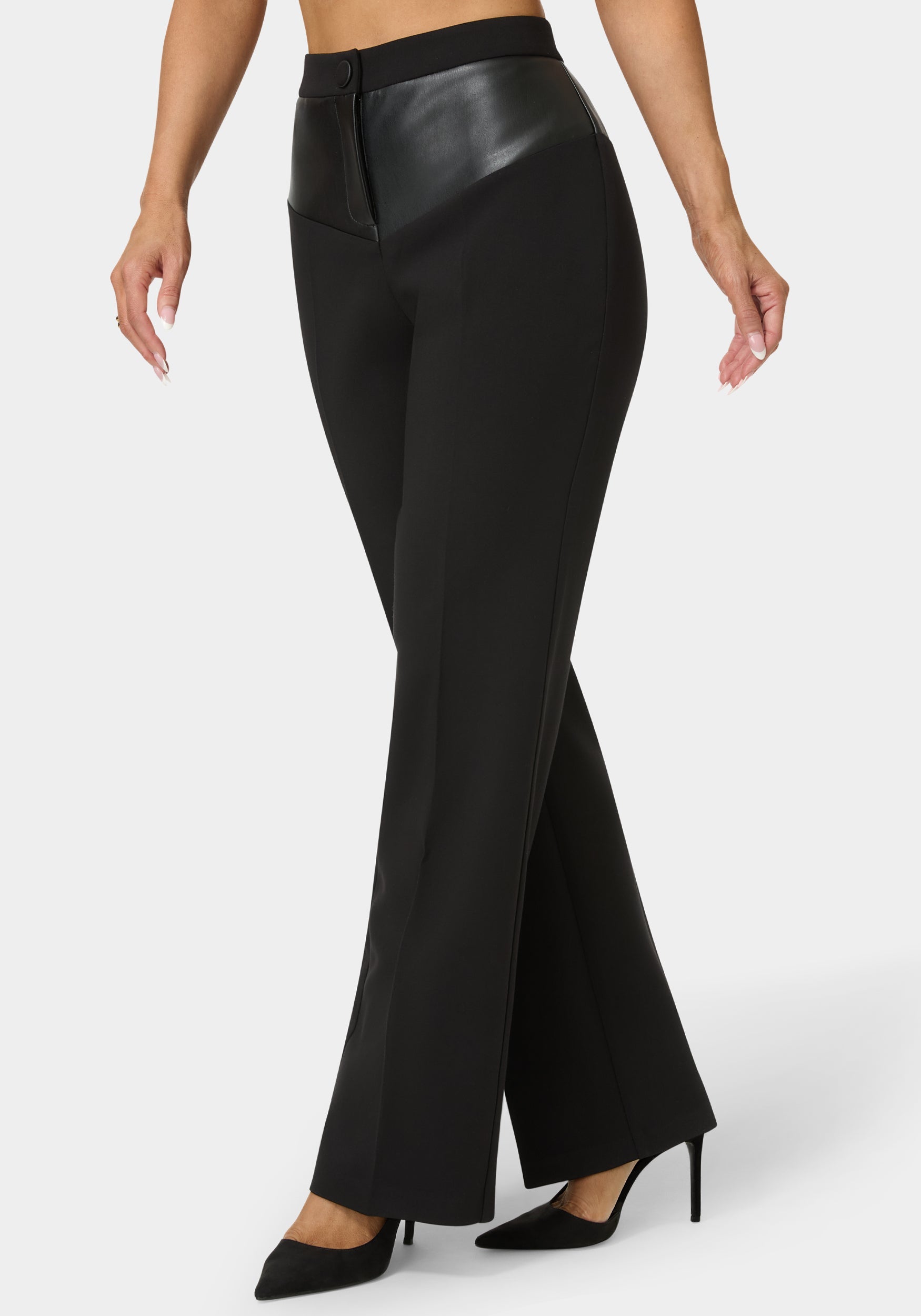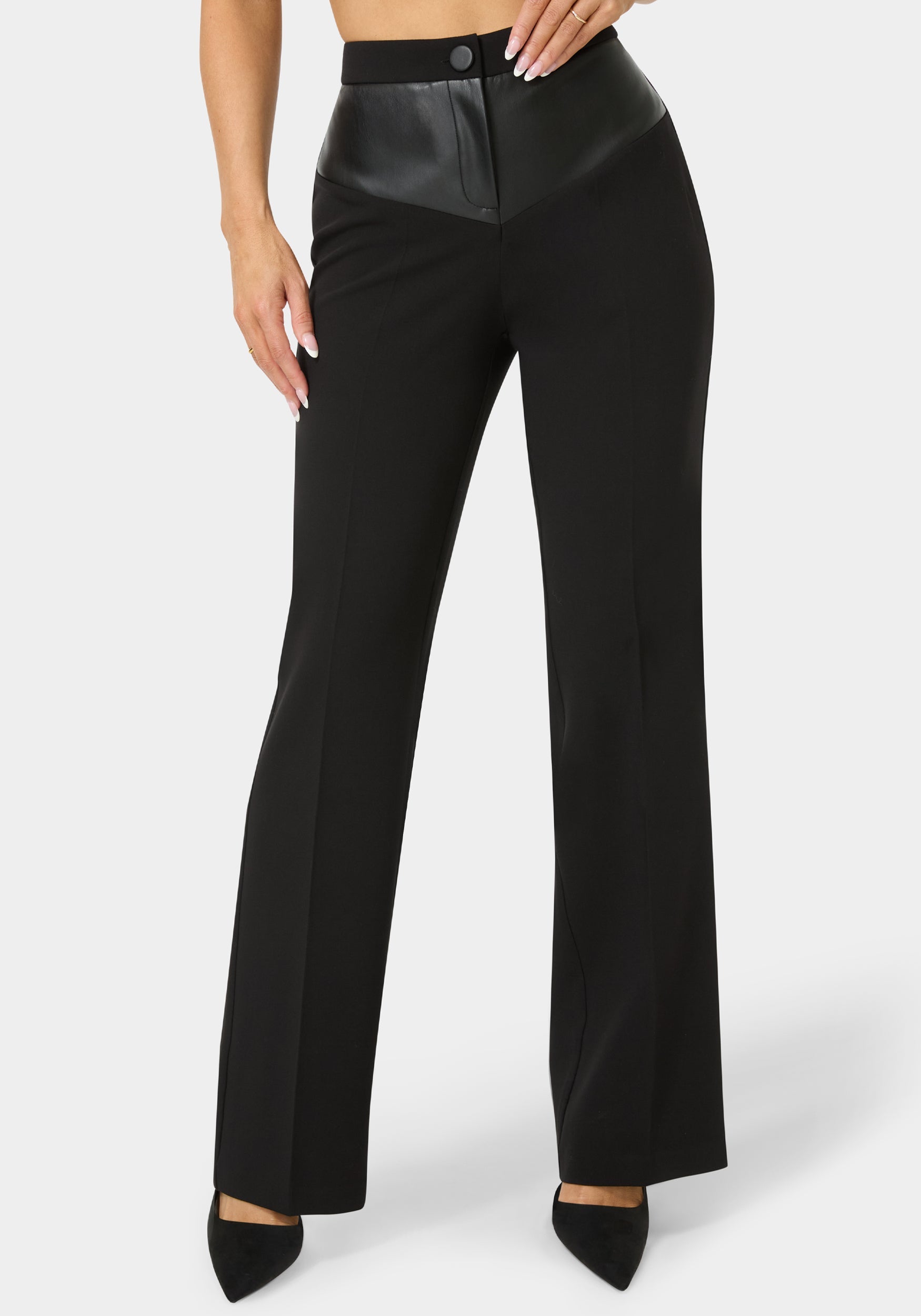 These straight-leg trousers feature vegan leather combo details; an excellent choice for standout styles.