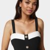 Flaunt a fresh style with this modern design. The satin band and decorative metal buttons add sophisticated detail for a versatile, flattering fit.