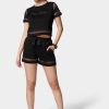 Designed in a scuba knit, these Bebe Logo Shorts feature mesh inserts along the hem, side slip pockets, and an elasticized drawstring closure. Pairs well with the Bebe Logo Scuba Top.