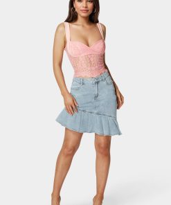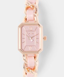 Bebe Women’s Baby Pink Strap And Rosegold Metal Chain Link Bracelet Watch | Baby Pink & Rosegold
